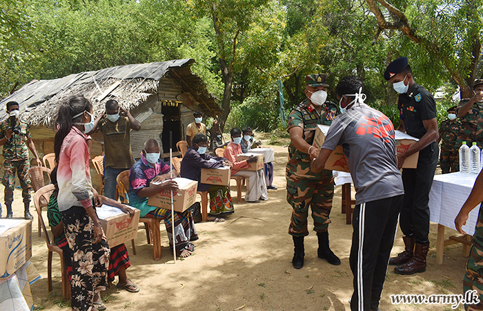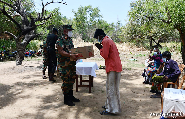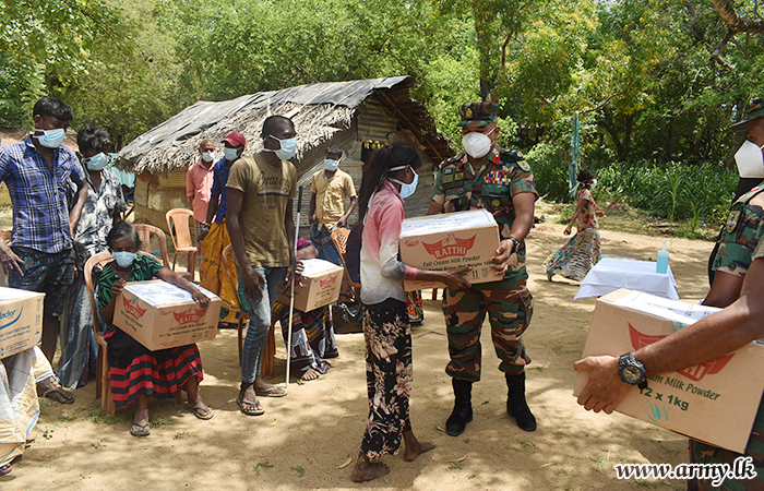 233 Brigade troops of the 23 Division under command to the Security Force Headquarters - East volunteered to donate dry ration packs for 20 families in Telingu village in Welikanda Sewanapitiya on Friday (25).
