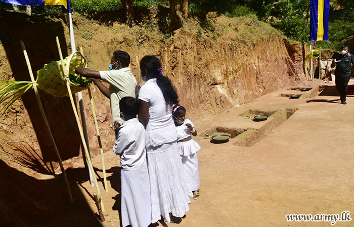 The foundation-laying ceremony for the construction took place on Friday (2) at Boralanda. Ms Nethmi Gunasekera and Mr Lahiru Dissanayake, residents in Australia have made the financial sponsorship for the construction of this much-needed house for Mr S. Sangargaru residing at No. 62 F, Wathugoda, Hinnaarangolla, Boralanda.