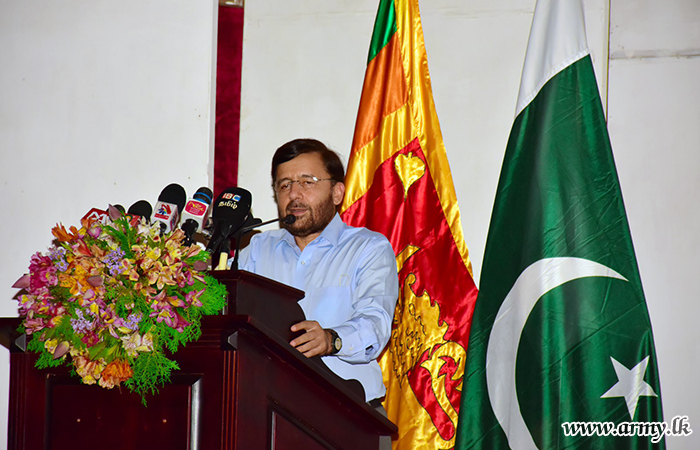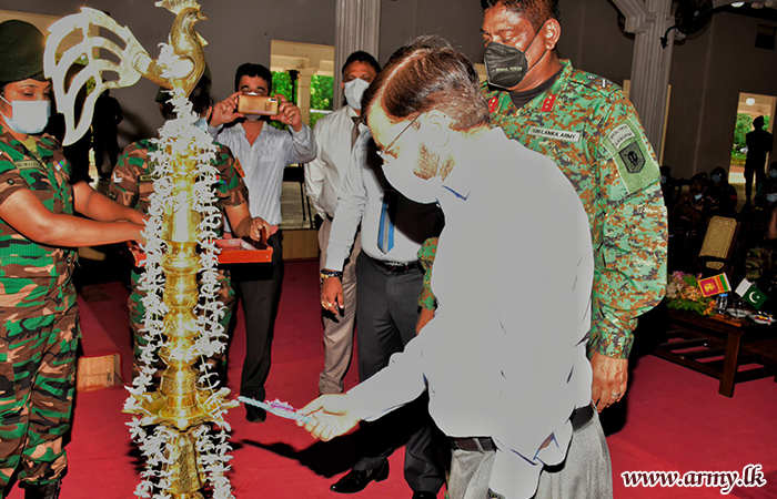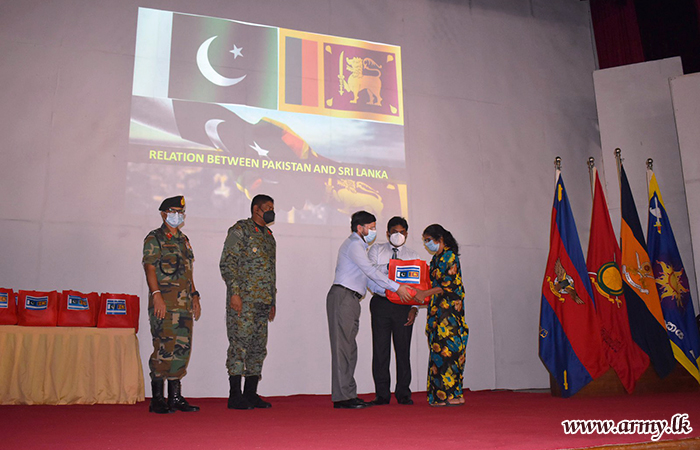 High Commissioner of the High Commission of Pakistan, His Excellency, Major General (Retd) Muhammad Saad Khattak who recently paid a courtesy call on the Commander, Security Forces-Kilinochchi, Major General Harendra Ranasinghe sponsored the distribution of 150 dry ration packs among needy families in Kilinochchi area on Tuesday (29).