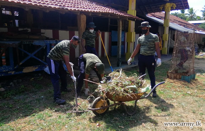 Troops of the 10 Sri Lanka Artillery, 11 Sri Lanka Light Infantry, 9 Sri Lanka Light Infantry and 16 Gemunu Watch joined this ‘Shramadana’ programme respectively under strict health guidelines.