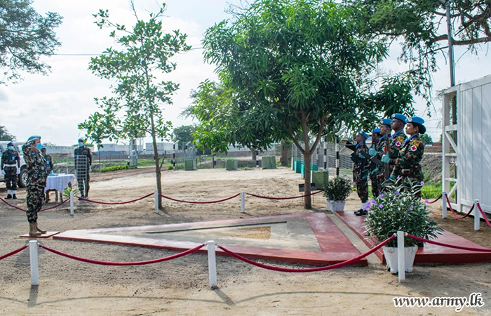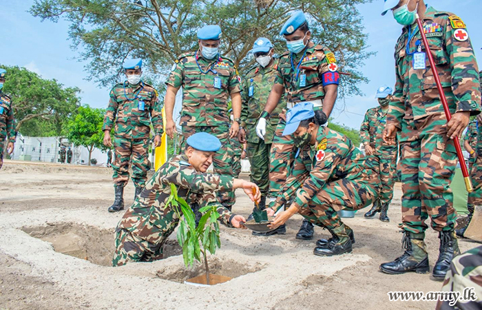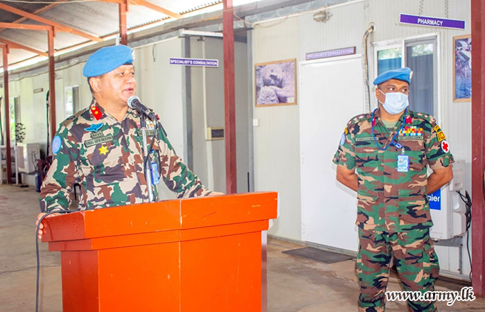 A power point presentation on the role and tasks of the SRIMED Hospital since May 2014 was then presented to him before he was invited to plant a sapling in the premises. Afterwards, the Sector Commander inspected all the sections inside the hospital and conveyed his appreciation to the Commanding Officer and all members of hospital staff for high standards at the location before he addressed the troops.