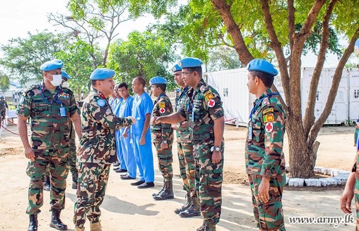 The visiting Sector Commander was received by Colonel D.R.S.A Jayamanna, Commanding Officer, Level 2 Hospital at the entrance to the compound and the SRIMED hospital’s staff was then introduced to the Sector Commander by the hospital Commanding Officer.