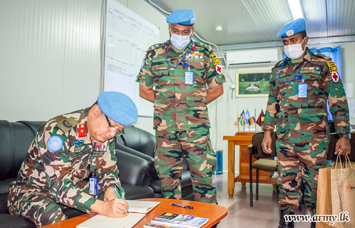 SRIMED troops in South Sudan contribute to emergency medical evacuation, prevention of spread of COVID-19 infection among UN members, maintenance of high level of discipline, etc and rapport with the general public, etc in Bor, South Sudan. Before his exit, he left some remarks in the Visitors’ book.
