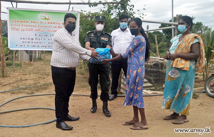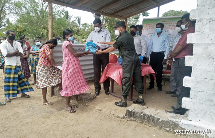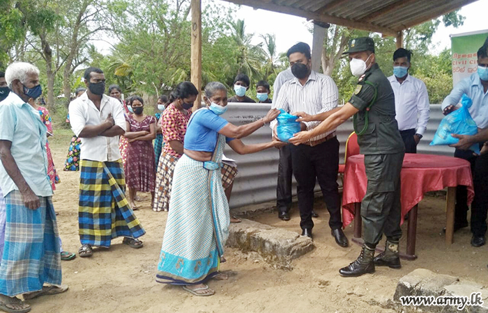Troops of 4 Gemunu Watch (GW) under Command to the 231 Brigade of the 23 Division under the Security Forces-East distributed 100 dry ration packets among needy families in Pawakkodi Cheney and Rajthurai areas on Saturday (10) after a philanthropist sponsored the stock.