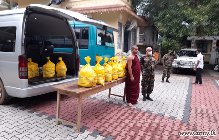 Troops of the 11 Division under command to the Security Force HQ-Central coordinated the donation of dry ration packs among 150 needy families in Kundasale area on Sunday (11) after inviting them to the Maha Vihara premises in Kundasale.