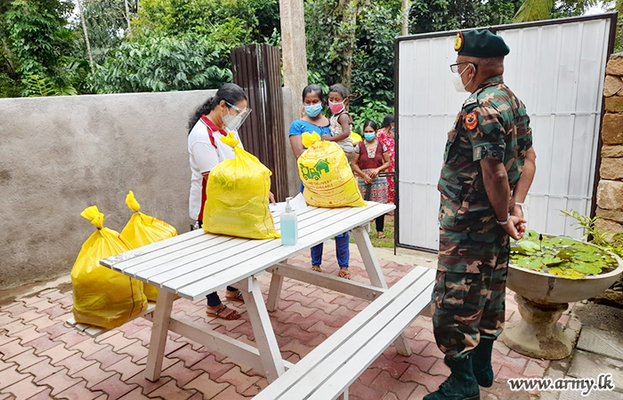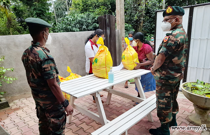 These dry ration packs that would help them relieve their economic hardships during the pandemic were received from a philanthropist, connected to the General Officer Commanding 11 Division, Major General Kithsiri Liyanage who conceived the notion of assisting them with relief packs.