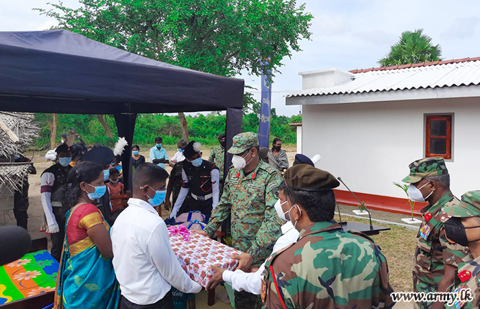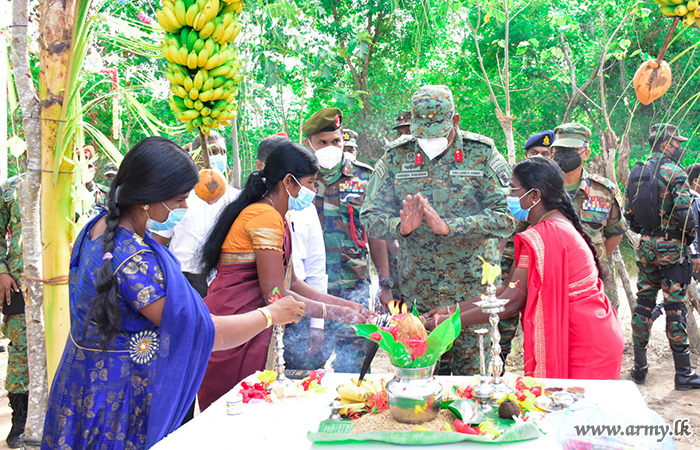 Divisional Secretary Karachchi, Grama Niladari for Konavil Division, General Officer Commanding of the 57 Division Major General Priyantha Jayawardana, Commander 571 Brigade, Brigadier Dammika Welagedara, Commander 573 Brigade, Brigadier Manoj Madurapperuma and several others participated in the simple warming ceremony, conducted, adhering to all COVID-19 preventive measures.