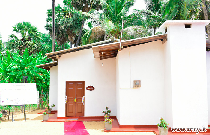 The community project, aimed at promoting gestures of reconciliation, goodwill and harmony was completed by 9 Sri Lanka Sinha Regiment troops under the supervision of the Commanding Officer Lieutenant Colonel L Epa In addition to their construction expertise, the same 9 SLSR troops were generous enough to buy a stock of essential provisions and household items for the family of Mr. Rasayya Rajeshwaram on Hospital Road, Civic Centre area who are living in abject poverty with family members.