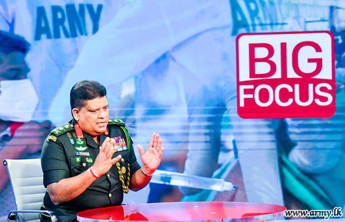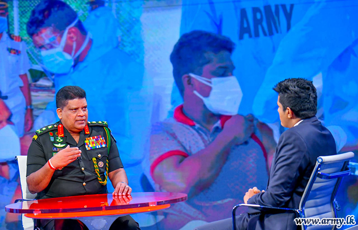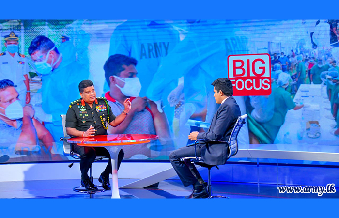 General Shavendra Silva, Head of the National Operation Centre for Prevention of COVID 19 Outbreak (NOCPCO), Chief of Defence Staff and Commander of the Army participating in the ‘Big Focus’ of the ‘24 x 7 Derana’ live programme this morning (14) at 11.00 am asserted that all civilians above 30 years in the country would be given the COVID-19 vaccine by September 2021 as per directions of HE the President.