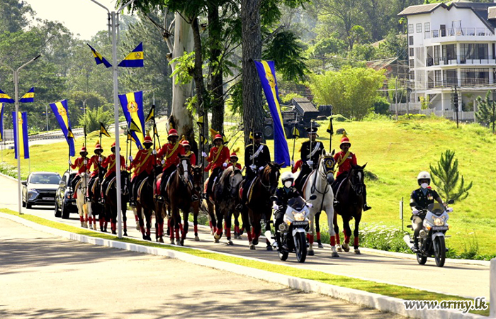 The newly-appointed 35th Commandant of the Sri Lanka Military Academy (SLMA), Brigadier Nalinda Niyangoda was greeted to military formalities when he arrived at the SLMA to assume office on Friday (16).