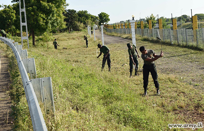 Troops of 12 Division in Hambanthota under command to the Security Forces-Central conducted a Shramadana campaign at Katuwewa 'Shasanaloka Temple in Hambantota premises during 15- 22 July with the participation of Officers and Other Ranks.