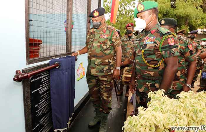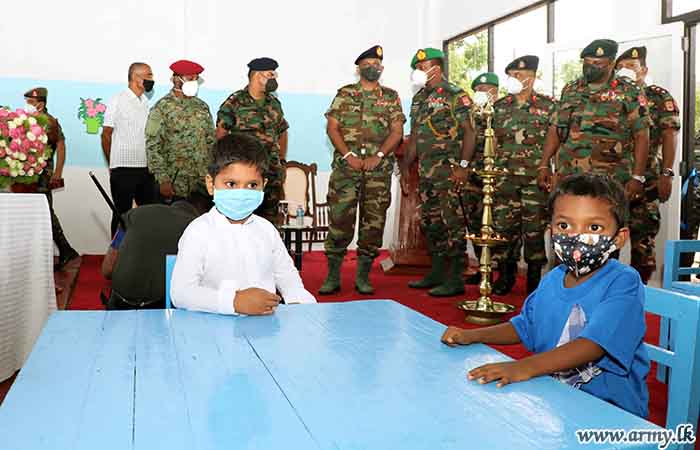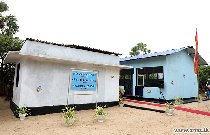 A pre - school building for kids at Navatkuli village, constructed by the troops under command to the 52 Division and 523 Brigade, was declared open by the Commander Security Forces-Jaffna, Major General Priyantha Perera on Friday (17).