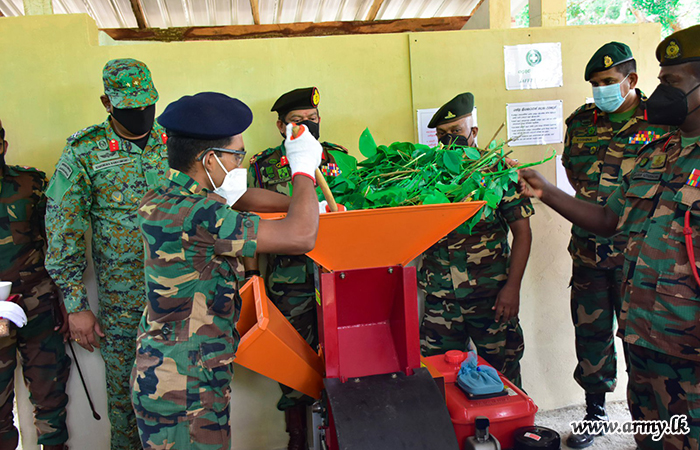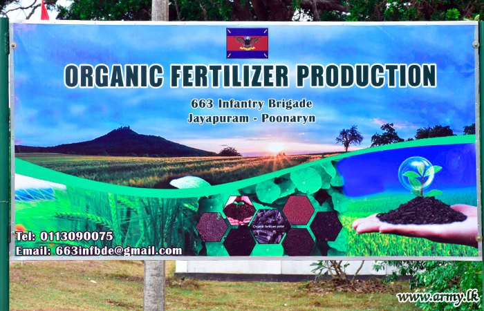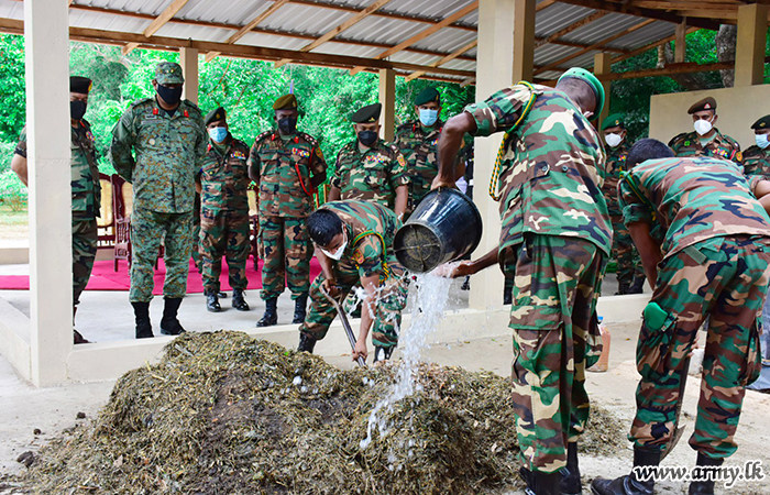 Giving a helping hand to the government's organic fertilizer production process as per directions of the Chief of Defence Staff and Commander of the Army General Shavendra Silva, Kilinochchi troops as directed by the Commander, Security Forces Kilinochchi, Major General Harendra Ranasinghe initiated a fertilizer processing centre inside the 663 Brigade HQ premises in Jayapuram, Pooneryn with the aim of increasing organic fertilizer production for farming needs.