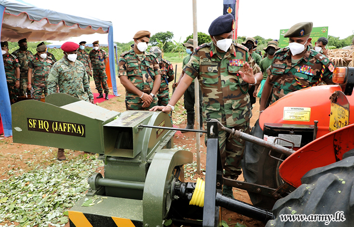 The Commander, Security Forces – Jaffna, Major General Priyantha Perera who has initiated the organic fertilizer production in Jaffna considered the production of this machine, named as “Agri Shredder PP1” a huge boost since it could pulverize 3.5 metric tons per hour after cutting bushes into 10 mm particles.