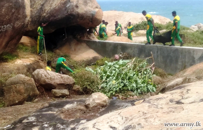 During this programme, troops cleaned the coastal belt along the Kririnda beach and the entire temple compound.