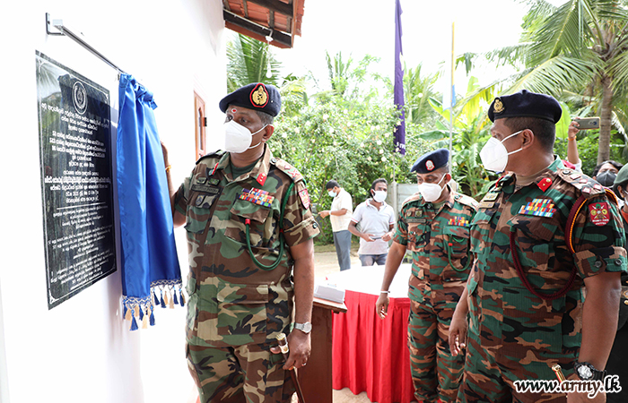 16 Gemunu Watch troops contributed their technical expertise and skilled labour for this construction free of charge under the close supervision of the Commander, 513 Brigade. Major General Priyantha Perera, Commander Security Forces Jaffna graced the house-warming ceremony on Tuesday (13) as the Chief Guest ceremony and cut a ribbon, together with the beneficiary to enter the new house as the auspicious minute struck.