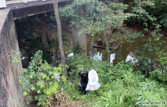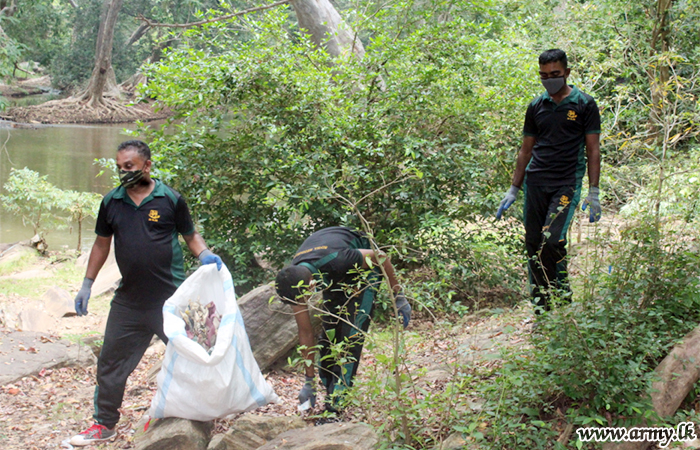 River banks of the Manik Ganga in Sella Kataragama areas in Kataragama were thoroughly cleaned by troops of the 20 Sri Lanka Sinha Regiment (SLSR) under command to the 121 Brigade of the 12 Division of the Security Force Headquarters - Central before the traditional water cutting ceremony of the Kataragama Esala festival got underway. The 'Shramadana' campaign took place on Thursday (22).