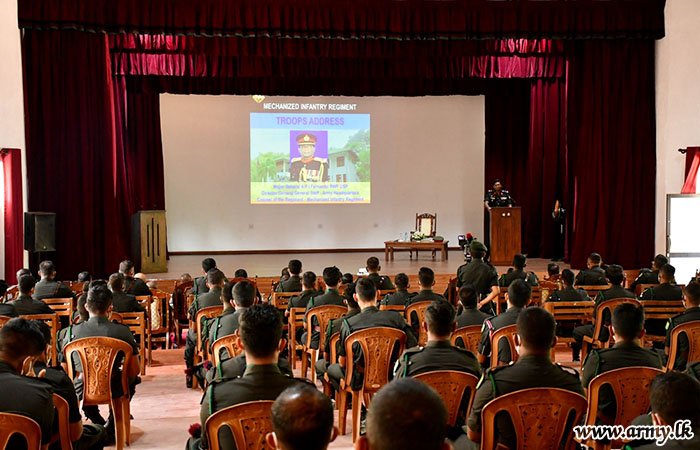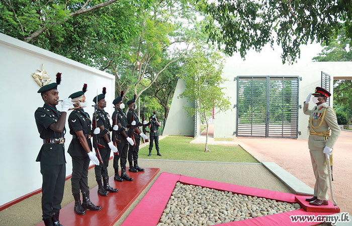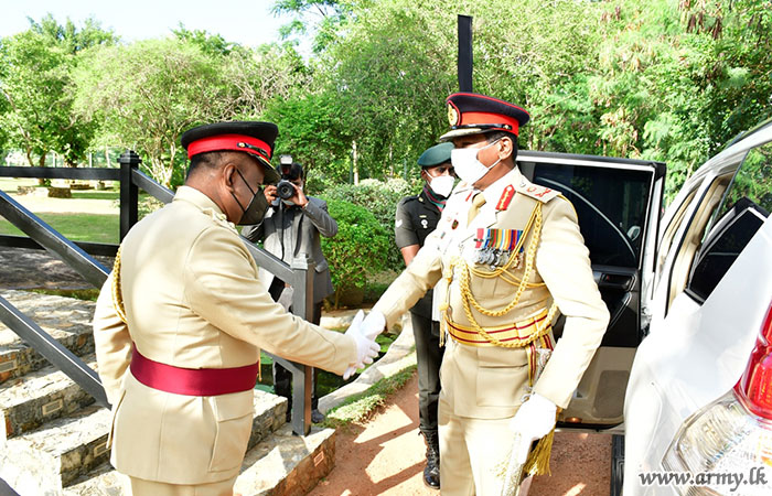The Colonel of the Regiment was warmly received upon his arrival by Brigadier Lasantha Balachandra - Chief Executive Officer of Nelum Pokuna Mahinda Rajapakshe Theatre along with Brigadier Janaka Priyadarshana - Commander, Mechanized Infantry Brigade, Brigadier Sagara Wanasinghe - Centre Commandant, Mechanized Infantry Regiment.