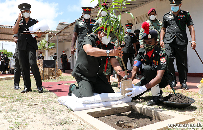 Subsequently, he visited the 522 Brigade and was invited to plant a Mango sapling in the Brigade premises as a token of memory. He also made a visit to the Battalion Training School at Vidaththapalai to inspect the progress of recruit training sessions. Finally, the Jaffna Commander visited the 7 Gajaba Regiment camp and 12 Gemunu Watch camp and met troops.