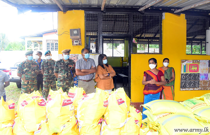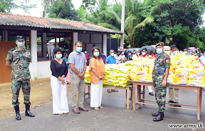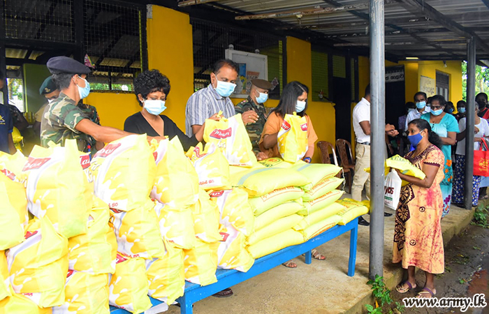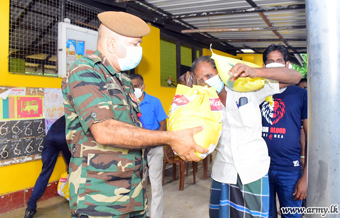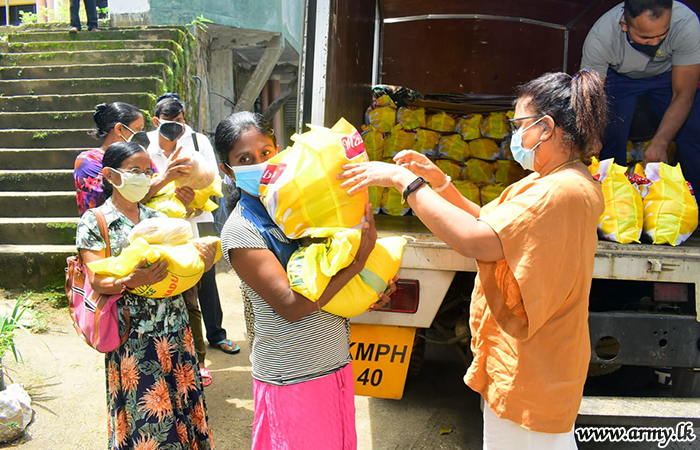 A selected group of 300 low income group families in Pallekele area, Kandy, affected due to hardships, caused by COVID-19 virus infection were recently provided with dry ration packs on an initiative taken by Major General Kithsiri Liyanage, General Officer Commanding, 11 Division after collecting them in three separate places.