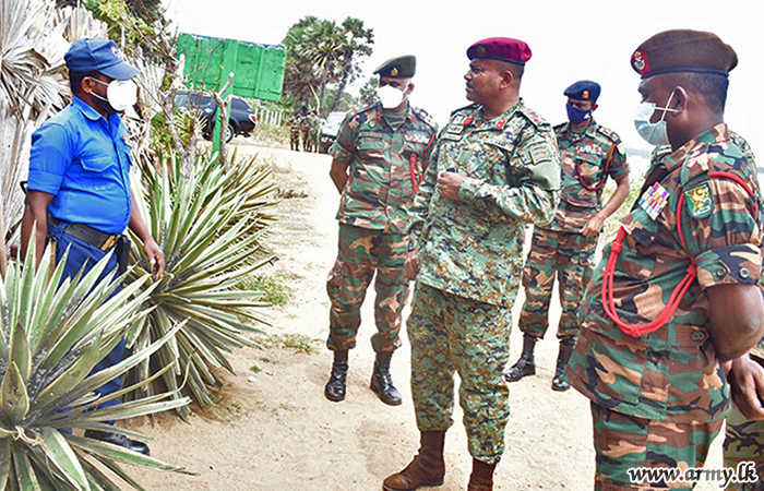 The visiting General Officer Commanding was accorded a Guard Turnout as a military formality at the entrance and was warmly welcomed by the Commander 651 Brigade, Brigadier Wasantha Bandara on Wednesday (21). The Brigade Commander briefed the visitor on operational matters and deployment along with administrative matters. Later, the General Officer Commanding spoke out his mind to Officers and Other Ranks and visited the Brigade and its under command battalions of the 19 Sri Lanka Light Infantry, the 17 (V) Sri Lanka Light Infantry camps and Battalion Training School at Mulankavil.