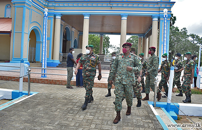 During the all three visits, the GOC visited the troops manning road blocks, key points and vulnerable points in respective Brigade areas. As the final leg of his programme, he visited the sacred church of Our Lady of Madhu, situated in the area of responsibility under the 65 Division.