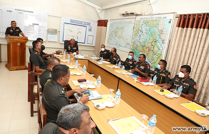 The visiting Security Forces Commander was warmly welcomed by Major General Harendra Peris, General Officer Commanding, 52 Division on his arrival. He was invited to plant a sapling to mark his visit to the location. The General Officer Commanding conducted a comprehensive briefing on the 52 Division’s area of responsibility. The Security Forces Commander addressed the Commanding Officers and troops of the 52 Division.