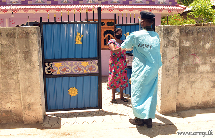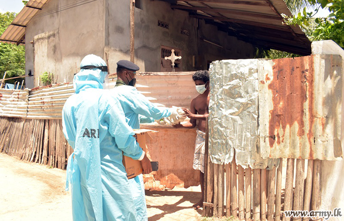 The project got underway on the instructions of Major General Jagath Kodituwakku, Commander, Security Forces - Jaffna with the support of the 551 Brigade troops who prepared the food packets and delivered them to their doorsteps.