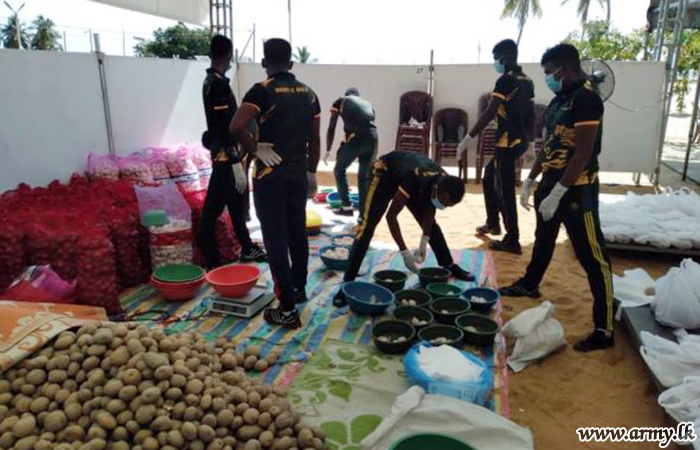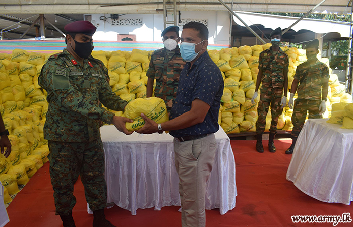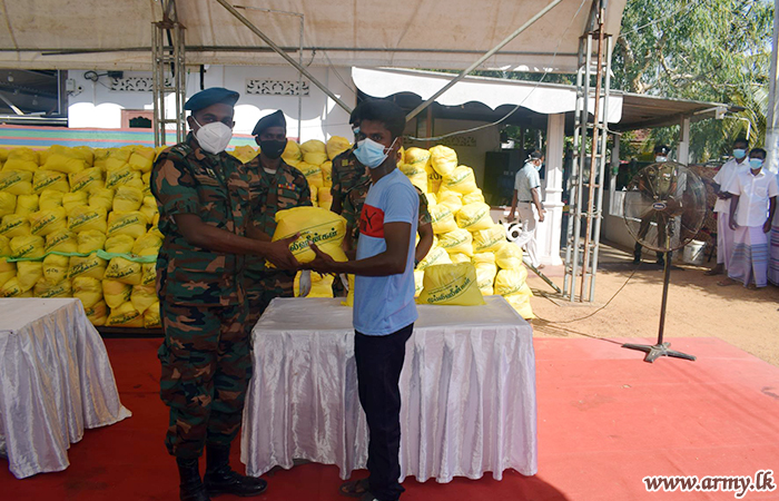 Troops of 11 (V) Sri Lanka Sinha Regiment (SLSR) under the guidance of the Commander 231 Brigade, Brigadier Vijitha Hettiarchchi gave their maximum support to distribute dry ration packs among 1246 needy low-income group families of all ethnicities in Batticaloa district on Sunday (25).