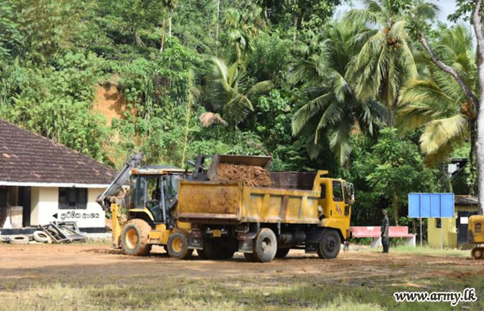 5 Field Sri Lanka Engineers with the technical support of the National Building Research Organization in Matara District are currently, engaged in the development of the Kalubovitiyana Vidyalaya, Pitabeddara in Matara District after 16th Presidential ‘Gama Samaga Pilisandarak’ programme at Pitabeddara village on 27 March 2021 instructed the Army to undertake the project.