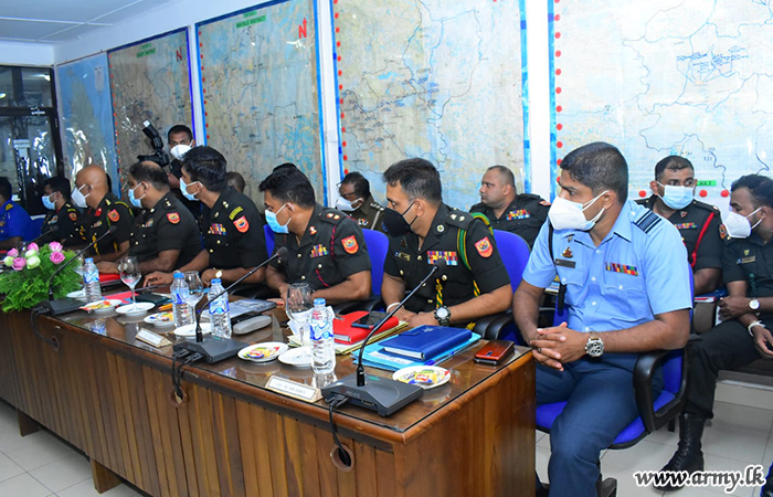 Major General Vikum Liyanage, Commander Security Forces - Central, together with Major General Kithsiri Liyanage, General Officer Commanding 11 Division, Brigade Commanders, Commanding Officers of sister services and representative Police Officers on Monday (2) during a meeting at the 11 Division Headquarters in Kundasale discussed security measures and coordination of arrangements in regard to the forthcoming Kandy Dalada Pageant.