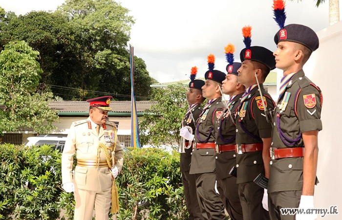 Retiring Major General Chandana Kumara Handunmulla paid his tribute to the monument by placing a floral wreath after he was warmly welcomed by Brigadier A.M Abeysinghe on behalf of all in the Regiment, and greeted in a Guard Turnout. Thereafter, he was invited to accept the salute at a colourful military parade in the parade ground in conformity with military traditions.
