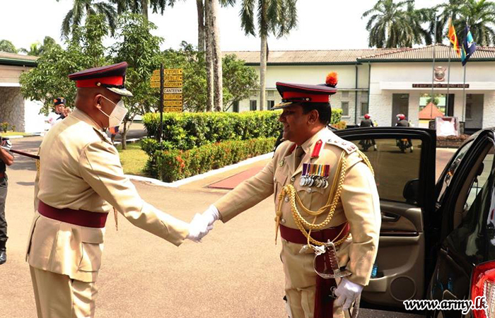 The new Colonel Commandant on arrival at the Regimental premises was greeted to a Guard Turnout at the entrance and welcomed by the Officers of the Regiment. Thereafter the Colonel Commandant placed a floral wreath at the fallen war heroes’ monument of the Sri Lanka Army General Service Corps.