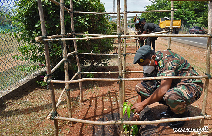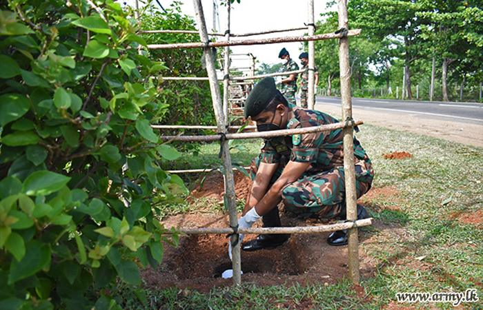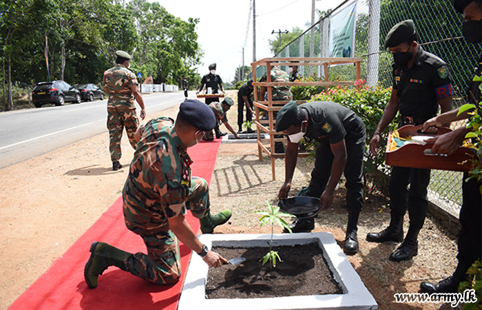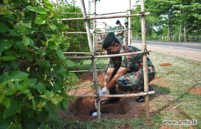 A project to plant saplings on both sideways of the A-9 road near the 56 Division HQ to be in line with the ‘Thuru Mithuru Nawa Ratak’ project of the Commander of the Army was launched by the 56 Division on Thursday (29).
