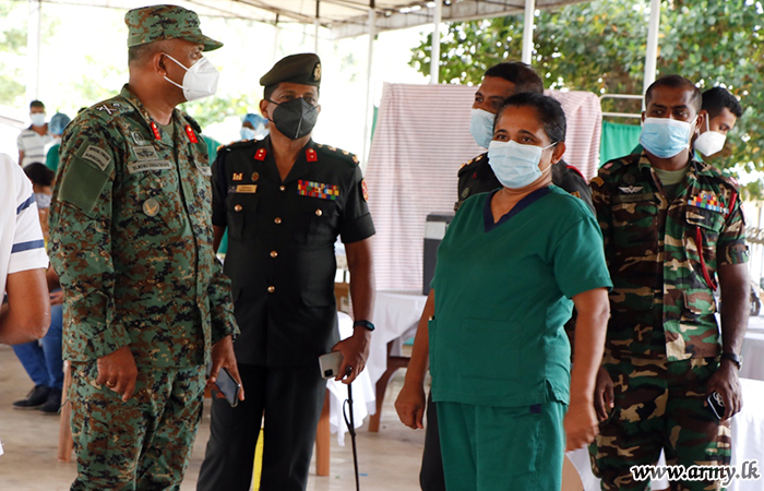 The national vaccination, being conducted by Army medical personnel at Panagoda Bodhi Rajaramaya (Army Temple) was closely supervised by Major General Sujeewa Senarathyapa, Commander, Security Forces-West on Monday (9) in order to ensure the project was continued with less inconvenience to the general public.