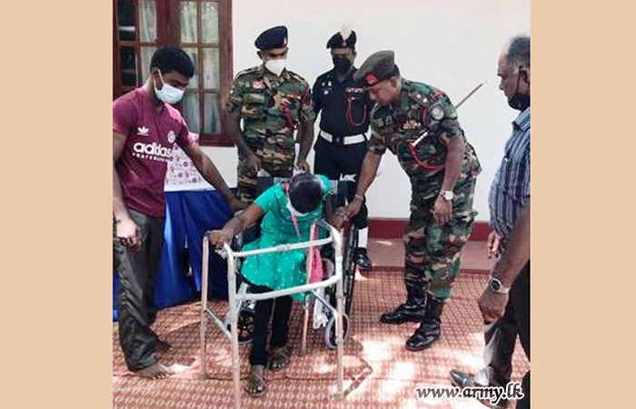 Troops of the 23 Sri Lanka Light Infantry (SLLI) under command to the 592 Brigade of the 59 Division under the Security Force HQ-Mullaittivu recently assisted two needy families with supply of their health needs after their miserable plights were brought to the notice of the troops.