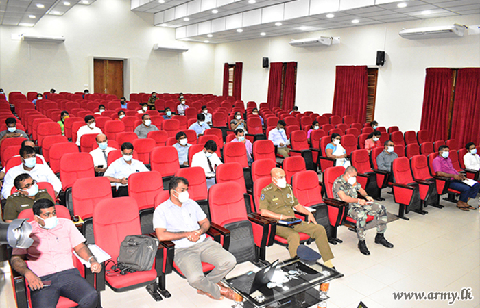The Commander Security Forces-Wanni, Major General Hemantha Bandara as the Overall Coordinator of Prevention of Covid - 19 in the District of Vavuniya presided over one more session of the coordinating conference on COVID-19 control on 09 August 2021 at the District Secretariat Office - Vavuniya, together with the District Secretary (Acting) - Vavuniya Mr T Thiresh Kumara, DIG Vavuniya Division, Regional Director of Health Services and other government officials.