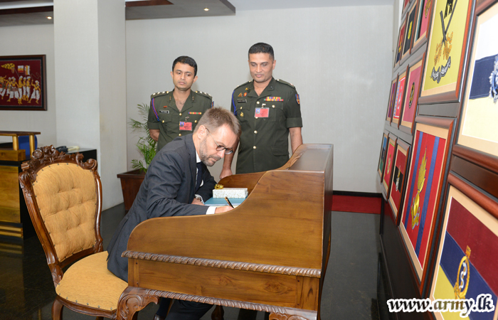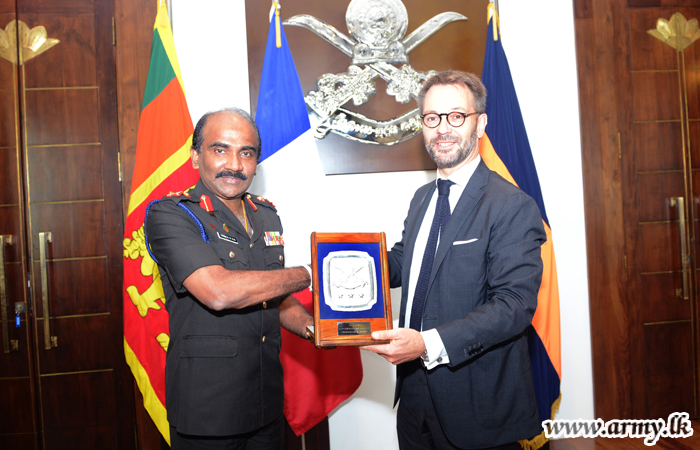 HE Jean-Marin Schuh, Ambassador of France to Sri Lanka and Maldives Friday (20) afternoon arrived at the Army Headquarters (AHQ) to pay a courtesy call on the Commander of the Army, Lieutenant General Crishanthe De Silva.
