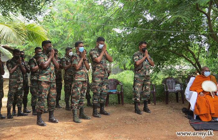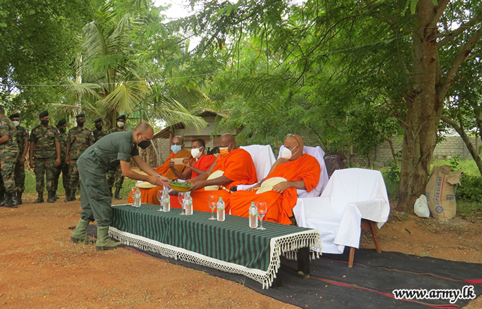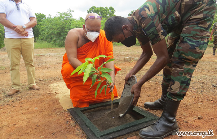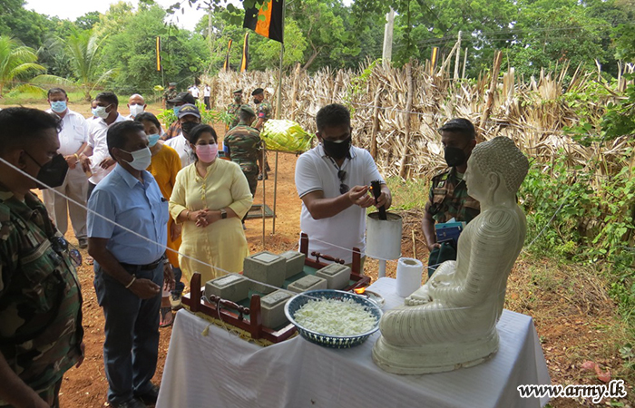 The sponsorship, extended by Ven. Dr. Bodagama Chandima Thera, Director of Cultural Committee, World Buddhist Sangha Council. Taiwan United Samādhi Buddhist Foundation, Founder and Director of Sri Lanka Dharma Chakra Children's Foundation, Presidential Adviser on International Religious and Cultural Affairs, would enable 24 Sri Lanka Sinha Regiment troops of the 591 Brigade to construct a new home for a needy family in Sila Watta GS Division in Mullaittivu. The cornerstone for its construction was laid by the sponsor and a few senior officers on Saturday (7).