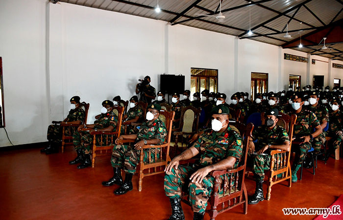 The first half of the day covered the Mechanized Infantry Training Centre. The Colonel of the Regiment was warmly welcomed by the Commandant, Mechanized Infantry Training Centre Colonel A.K Peiris upon arrival. Thereafter, he was invited to plant a sapling and sat for a group photograph. During the visit, the formal briefing was conducted by the Commandant before he visited the camp premises and addressed the troops of the Mechanized Infantry Training Centre and the 2 nd Battalion Mechanized Infantry Regiment.