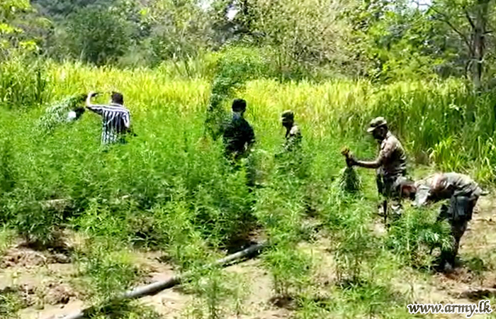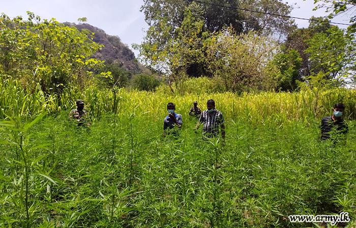 On information received from Military Intelligence, troops of the 12 Division under command to the Security Force HQ - Central on Friday (13) raided a Cannabis (Ganja) cultivation in the general area of Aluth Wewa in Koslanda and destroyed it.