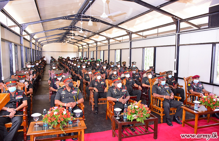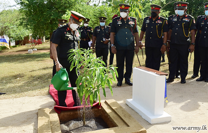 Afterwards, Major General Vikum Liyanage sat for a group photo and planted a sapling to mark his formal visit to the place before the General Officer Commanding, 12 Division, presented a briefing on the role and tasks in the area. Afterwards, he addressed the troops, followed by an all rank tea and left memories in the visitor's book.