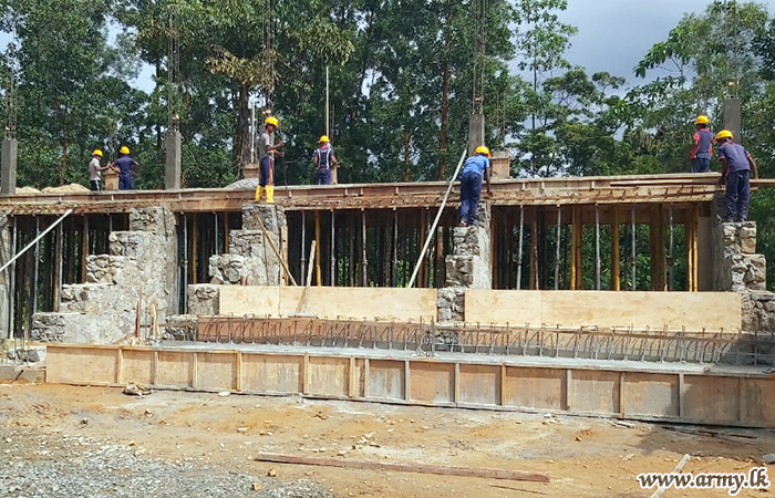 12 (V) Corps of Engineer Services (CES) Regiment troops are currently giving finishing touches to the complete renovation of the Yattapatha public playground at 7th Mile Post in Kalutara district and construction of the pavilion by 5 Field Engineer Regiment under the supervision of Briagadier Asanka Perera, Commander of the General Engineer Brigade who visited the construction site a few days ago to assess the progress of the project.