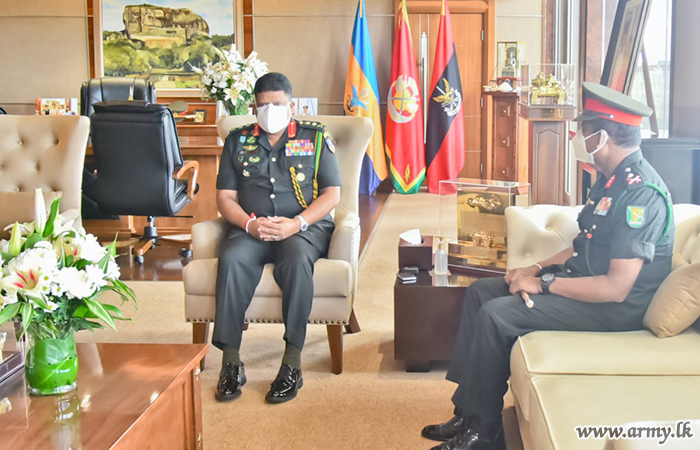 Major General Nandana Dunuwila, one of the most senior officers, groomed by the GW who has served a number of key appointments in the Army completed more than three decades of dedicated service and contributed to the uplift of professional standards of the GW in particular. General Shavendra Silva during the brief interaction refreshed memories and shared a few thoughts with the retiring Major General Nandana Dunuwila while appreciating projects he undertook as the General Officer Commanding, 56 Division during these critical times with the outbreak of the epidemic.