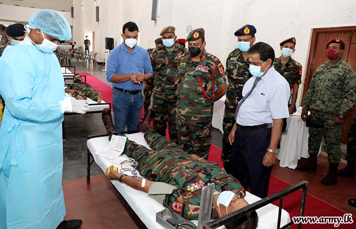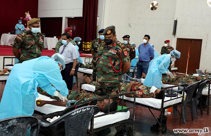 Troops of the Security Force Headquarters-Jaffna once again donated much-needed blood to save the lives of hospitalized patients in Jaffna following a request made by Jaffna Teaching Hospital medical officers on Friday (20). As blood stocks in the Jaffna Teaching Hospital have drastically fallen short of requirements for surgeries, particularly in the wake of COVID-19 pandemic, the urgent need was projected to the troops.