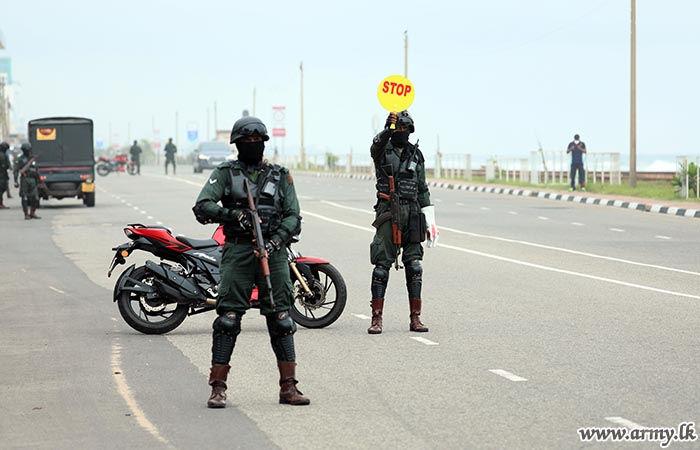 Sri Lanka Army troops, together with Policemen on the directions of General Shavendra, Chief of Defence Staff, Commander of the Army and Head of the National Operation Centre for prevention COVID-19 Outbreak (NOCPCO), are deployed island-wide from early this morning (21) to strictly impose quarantine curfew, now in effect in order to prevent further transmission of the virus.