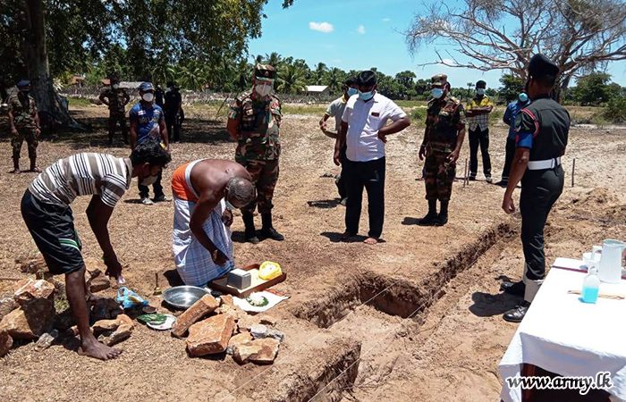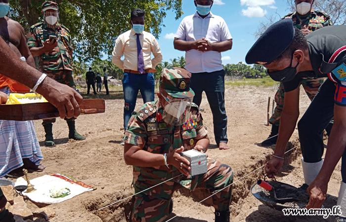 Commander, 233 Brigade, Major R.M.J.B Ranaraj - 6 GR Commanding Officer, Civil Affairs Officer -233 Brigade and troops were associated with the construction at the occasion, adhering to COVID 19 preventive measures.