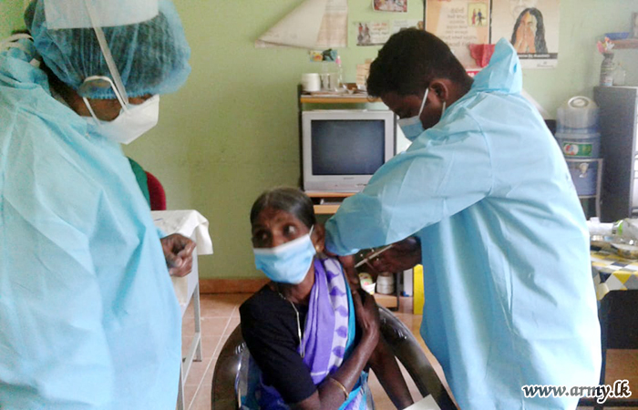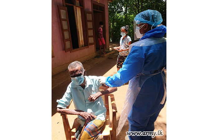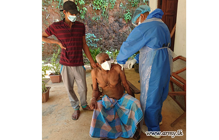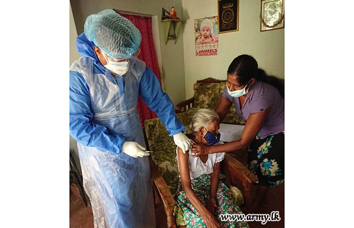 On the directions of Major General Vikum Liyanage, Commander Security Forces – Central, troops visited their door steps and conducted the vaccination project after proper registration process in coordination with relevant state officials.