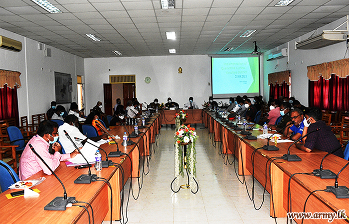 Major General Hemantha Bandara, Commander Security Forces-Wanni as the Overall Coordinator for Prevention of COVID- 19 in the District of Vavuniya and the acting District Secretary for Vavuniya Mr. T Thiresh Kumara presided one more round of the coordinating conference on 25 August 2021 at the District Secretariat Office, Vavuniya.