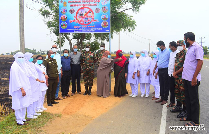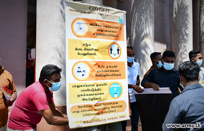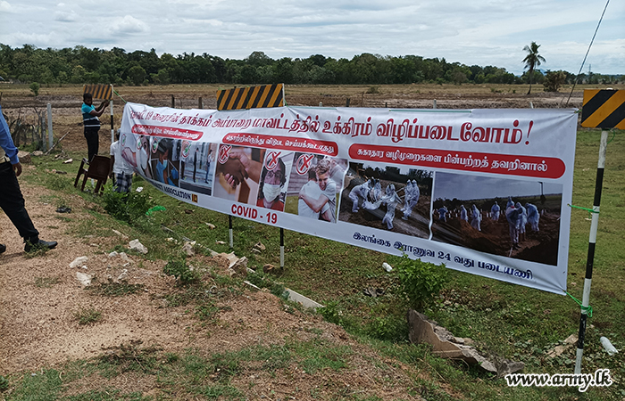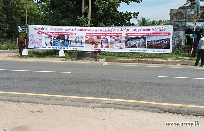 In the wake of the rapid spread of COVID-19 virus in Ampara district, 24 Division HQ launched a public awareness campaign by displaying educative banners about dangers of COVID-19 infection, preventive measures and health guidelines that should be strictly adopted and so on.